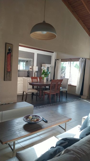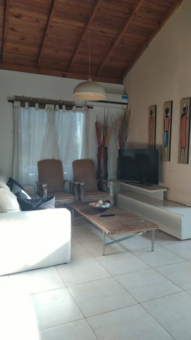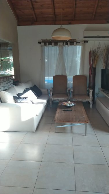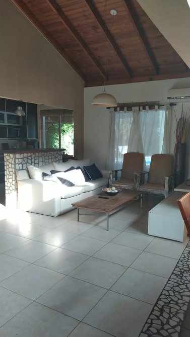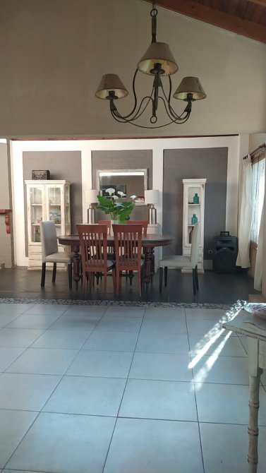 Consta de: Cocina con barra/desayunador, living-comedor con hogar, 3 habitaciones una de ellas con baño en suite y amplio vestidor, 2 baños, lavadero, bauleras, pileta con jacuzzi y deck, quincho con pileta, cochera cubierta para 2 vehiculos y un amplio jardin.