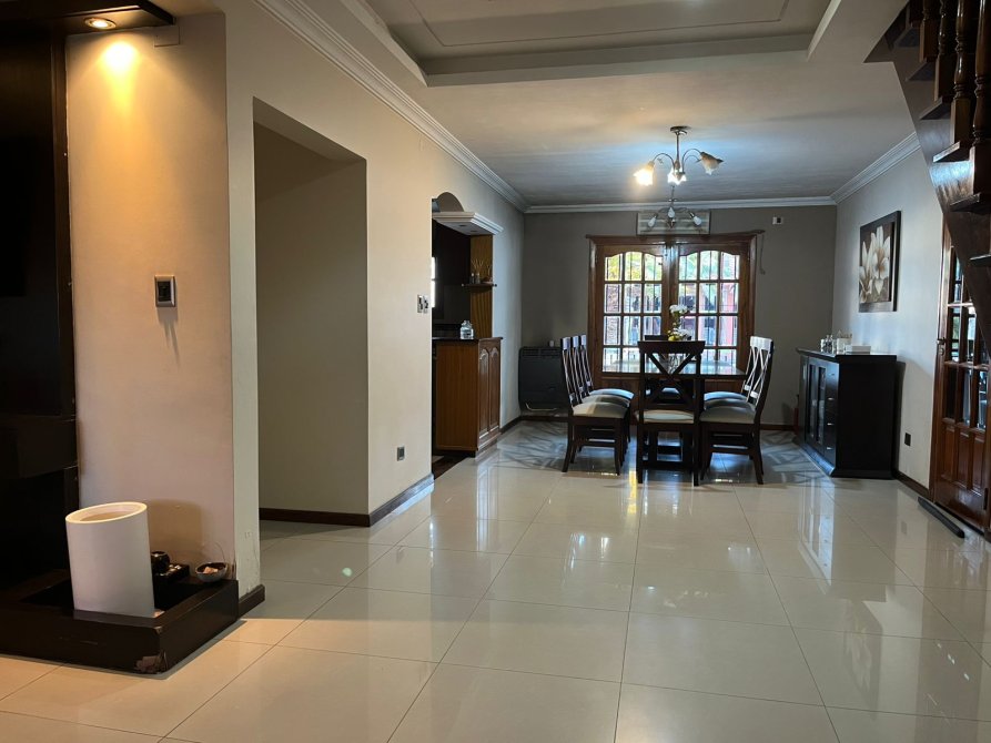 Planta baja: Amplio living-comedor, cocina con comedor diario, toilette de visitas, cochera descubierta y cubierta, lavadero.