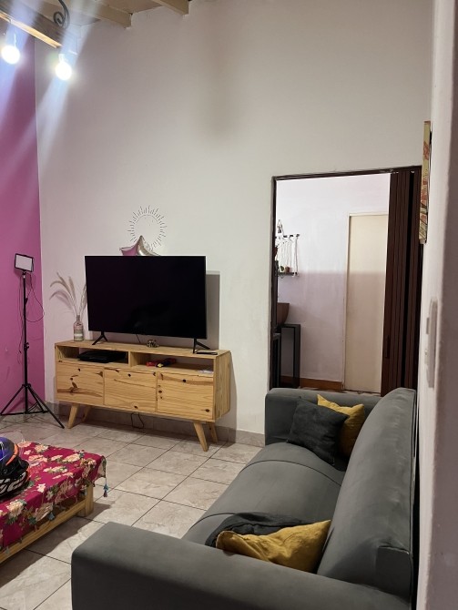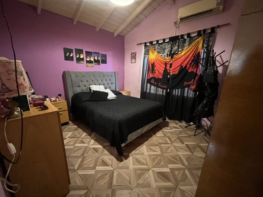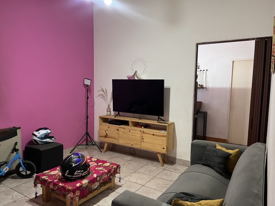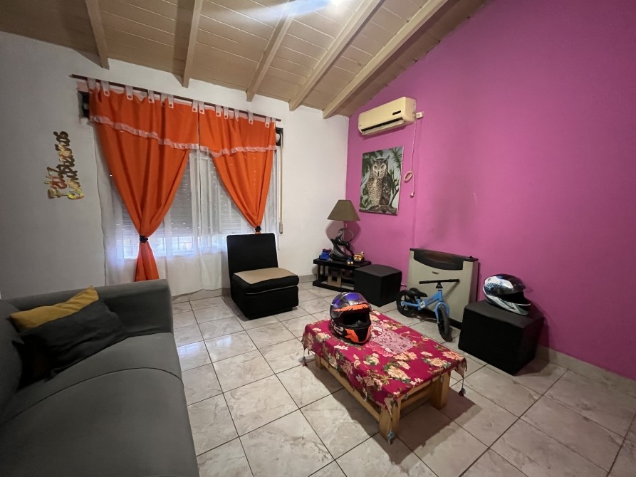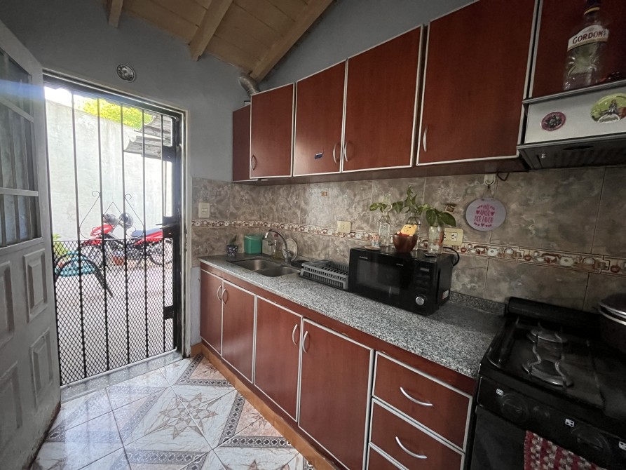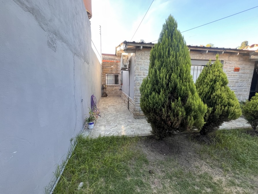 Consta de: Jardín al frente con cochera, ingreso al living, cocina-comedor, baño completo, 2 dormitorios, patio en el fondo.